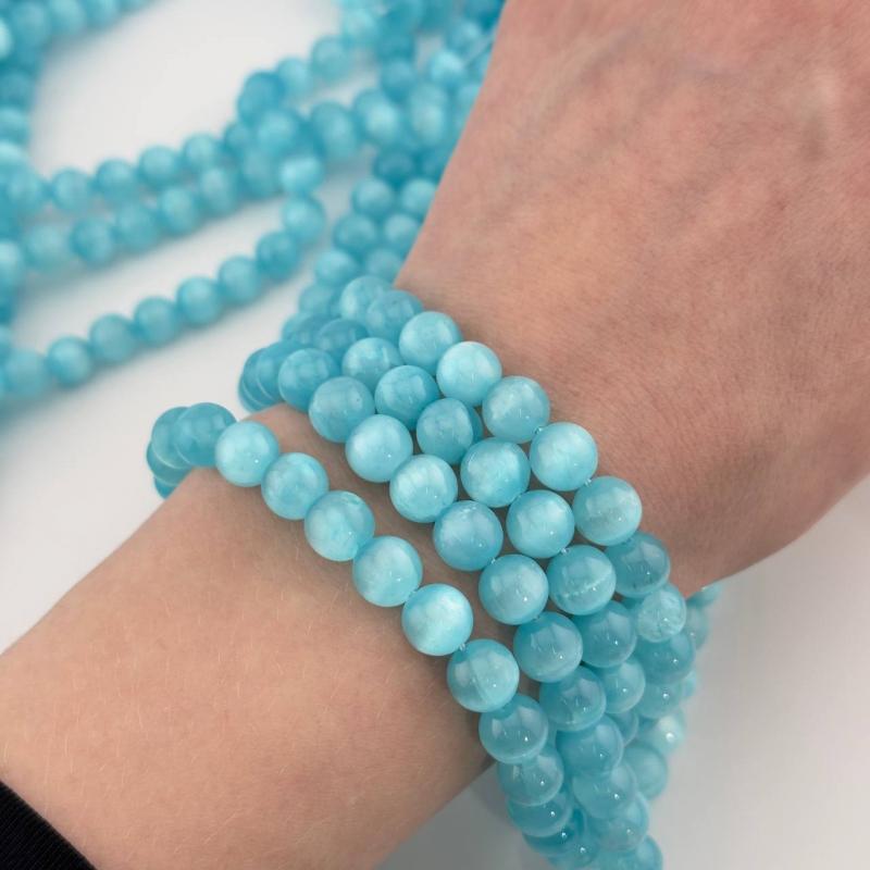 Бусины Селенит цвет голубой размер 6мм 8мм 10мм натуральный камень